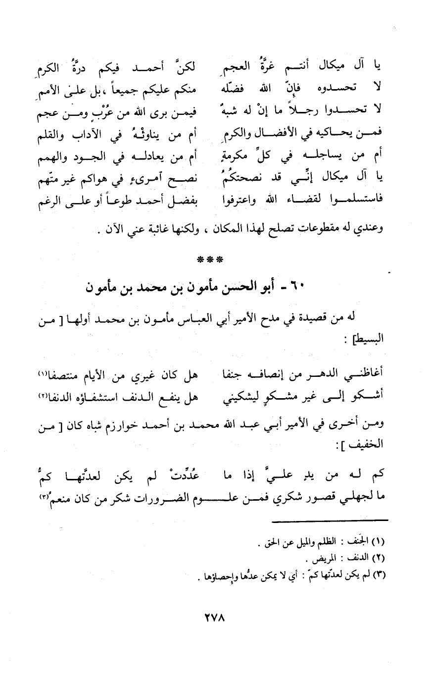 (يَا آل ميكال أَنْتُم غرَّة الْعَجم ... لَكِن أَحْمد فِيكُم درة الْكَرم)
