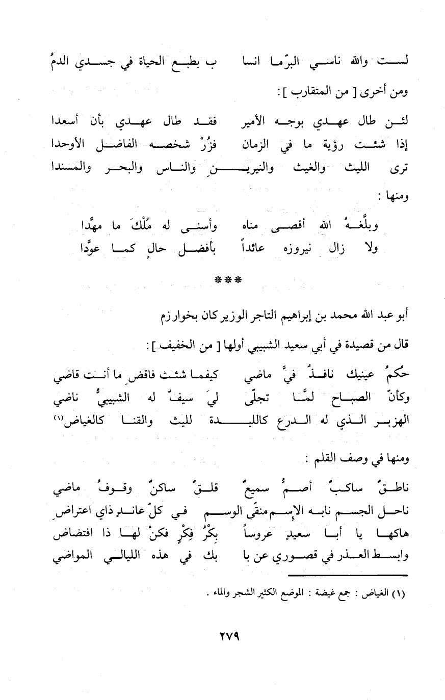 (لست وَالله ناسي البرما أَنْسَاب ... بطبع الْحَيَاة فِي جَسَدِي الدَّم) // من الْخَفِيف //