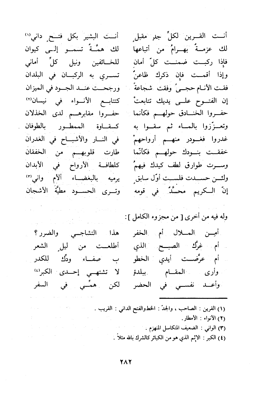 (أَنْت القرين لكل جد مقبل ... أَنْت البشير بِكُل فتح داني)
