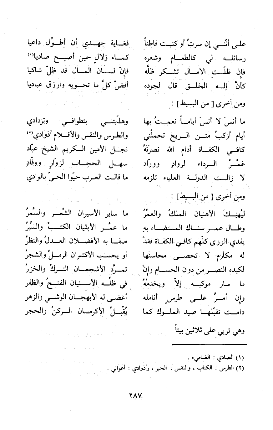 (رسائله لي كالطعام وشعره ... كَمَاء زلال حِين أصبح صاديا)