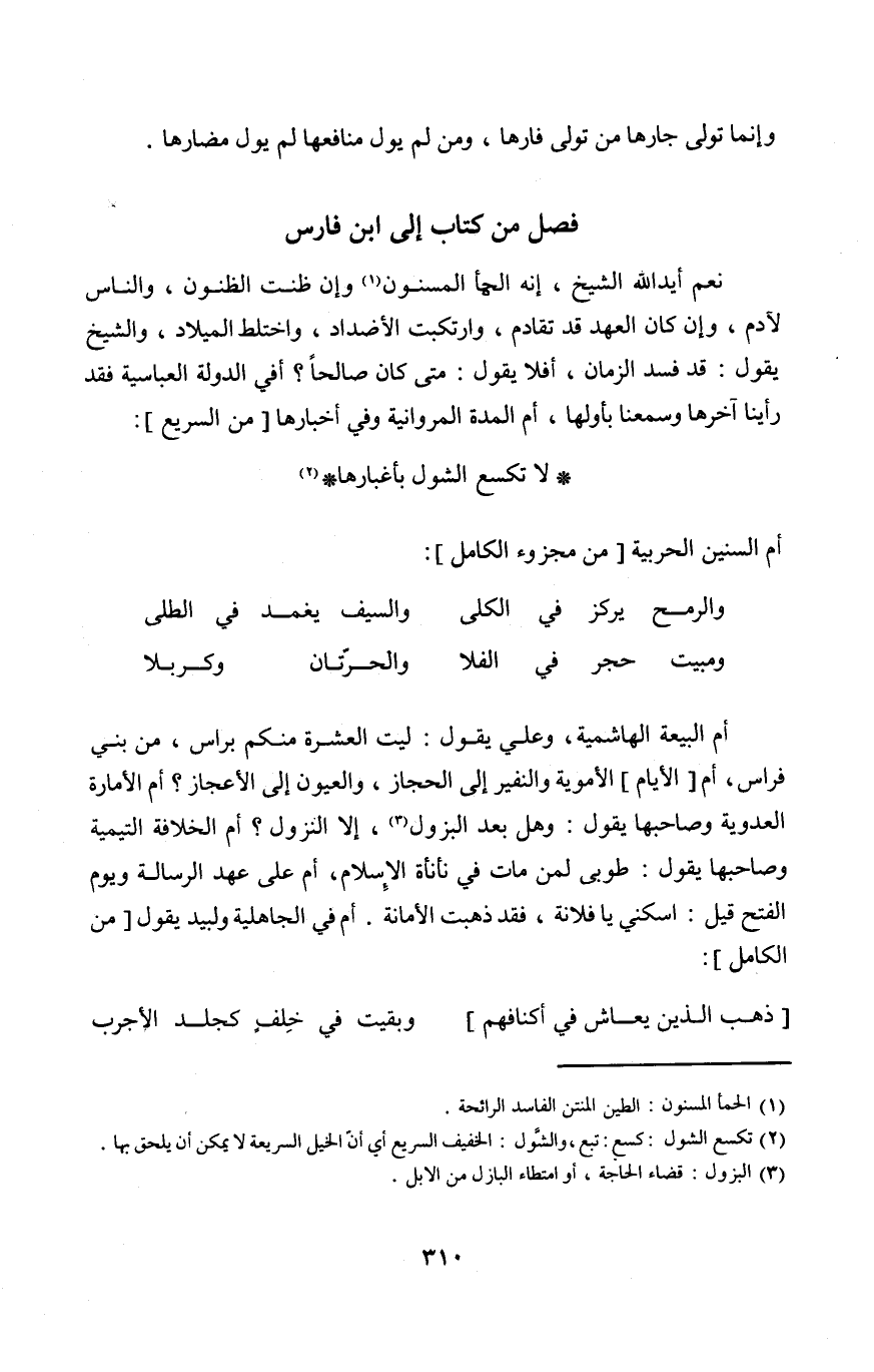 فصل من كتاب إِلَى ابْن فَارس
