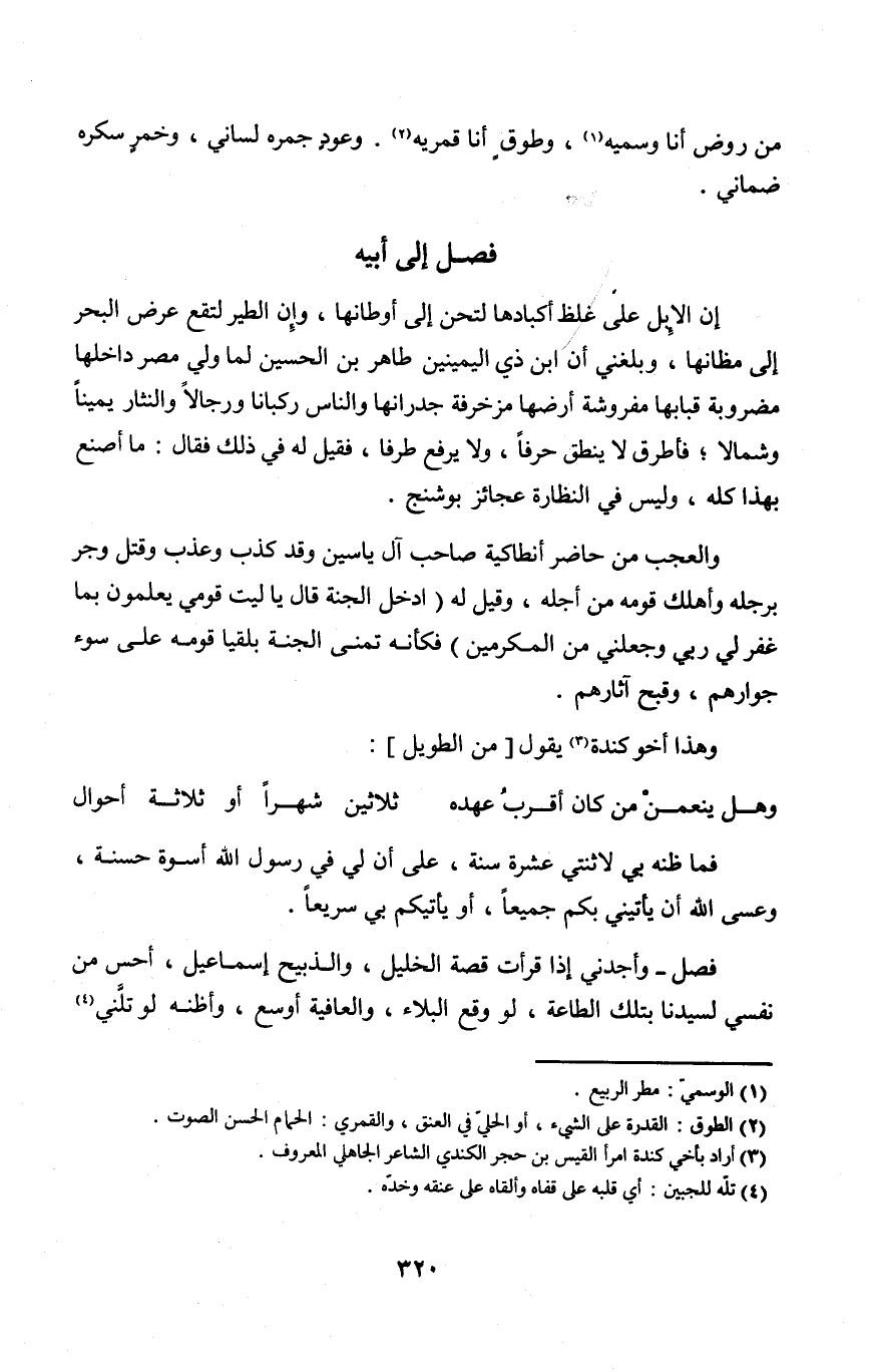 فصل وأجدني إِذا قَرَأت قصَّة الْخَلِيل والذبيح إِسْمَاعِيل أحس من نَفسِي لسيدنا بِتِلْكَ الطَّاعَة لَو وَقع الْبلَاء والعافية أوسع وَأَظنهُ لَو تلني