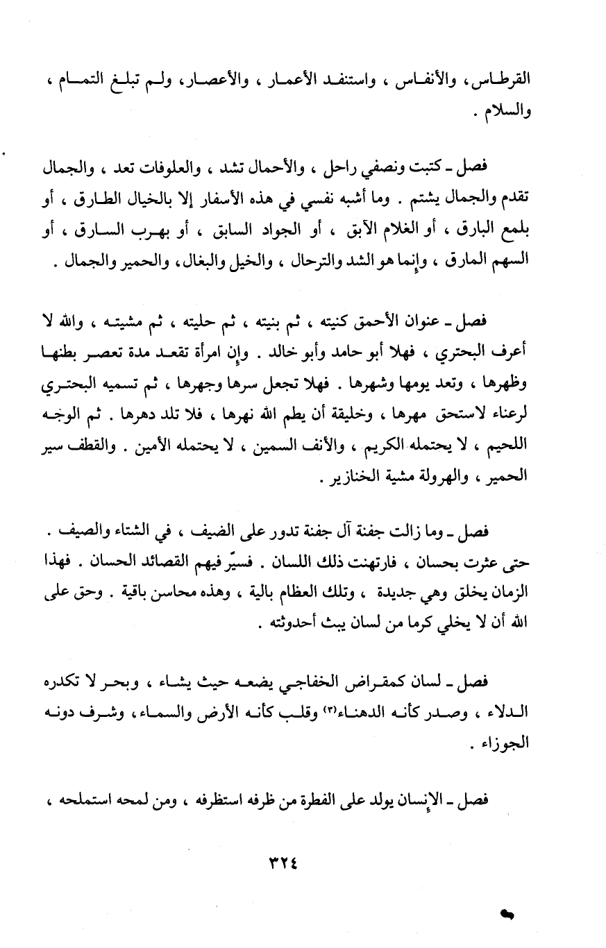فصل عنوان الأحمق كنيته ثمَّ بنيته ثمَّ حليته ثمَّ مشيته وَالله لَا أعرف البحتري فَهَلا أَبُو حَامِد وَأَبُو خَالِد