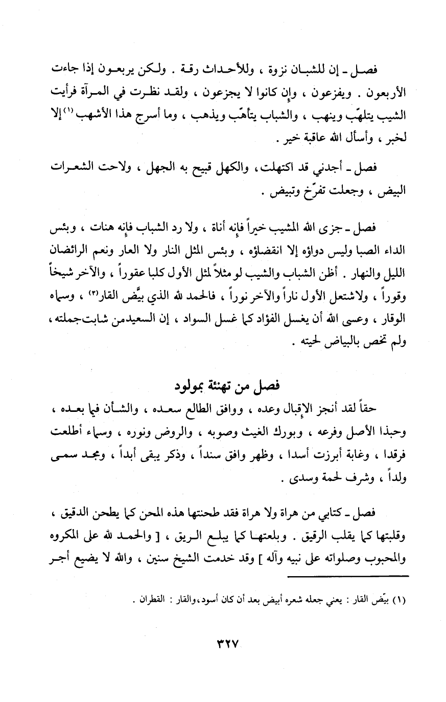 فصل أجدني قد اكتهلت والكهل قَبِيح بِهِ الْجَهْل ولاحت الشعرات الْبيض وَجعلت تفرخ وتبيض