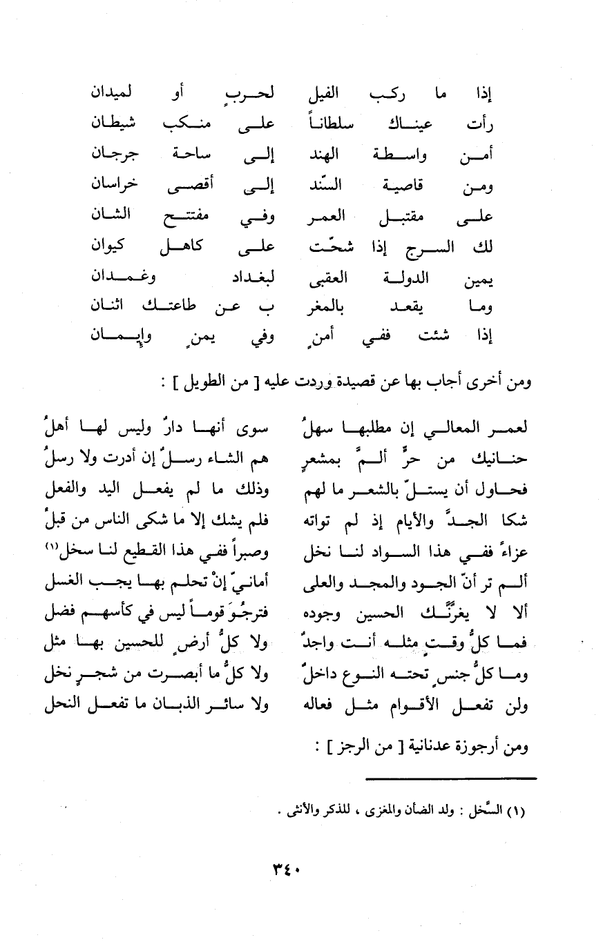 (إِذا مَا ركب الْفِيل ... لِحَرْب أَو لميدان)