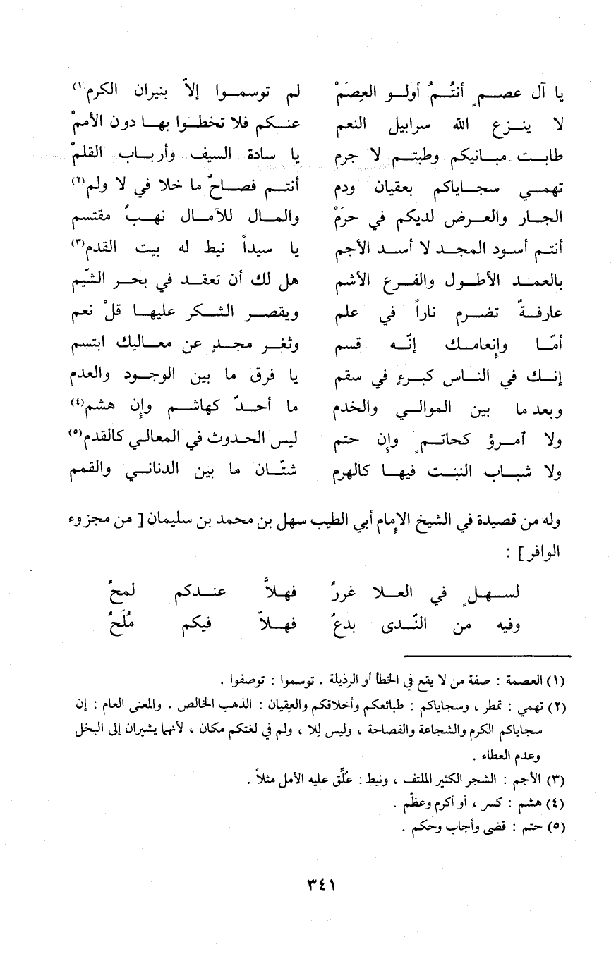 وَله من قصيدة فِي الشَّيْخ الإِمَام أبي الطّيب سهل بن مُحَمَّد بن سُلَيْمَان