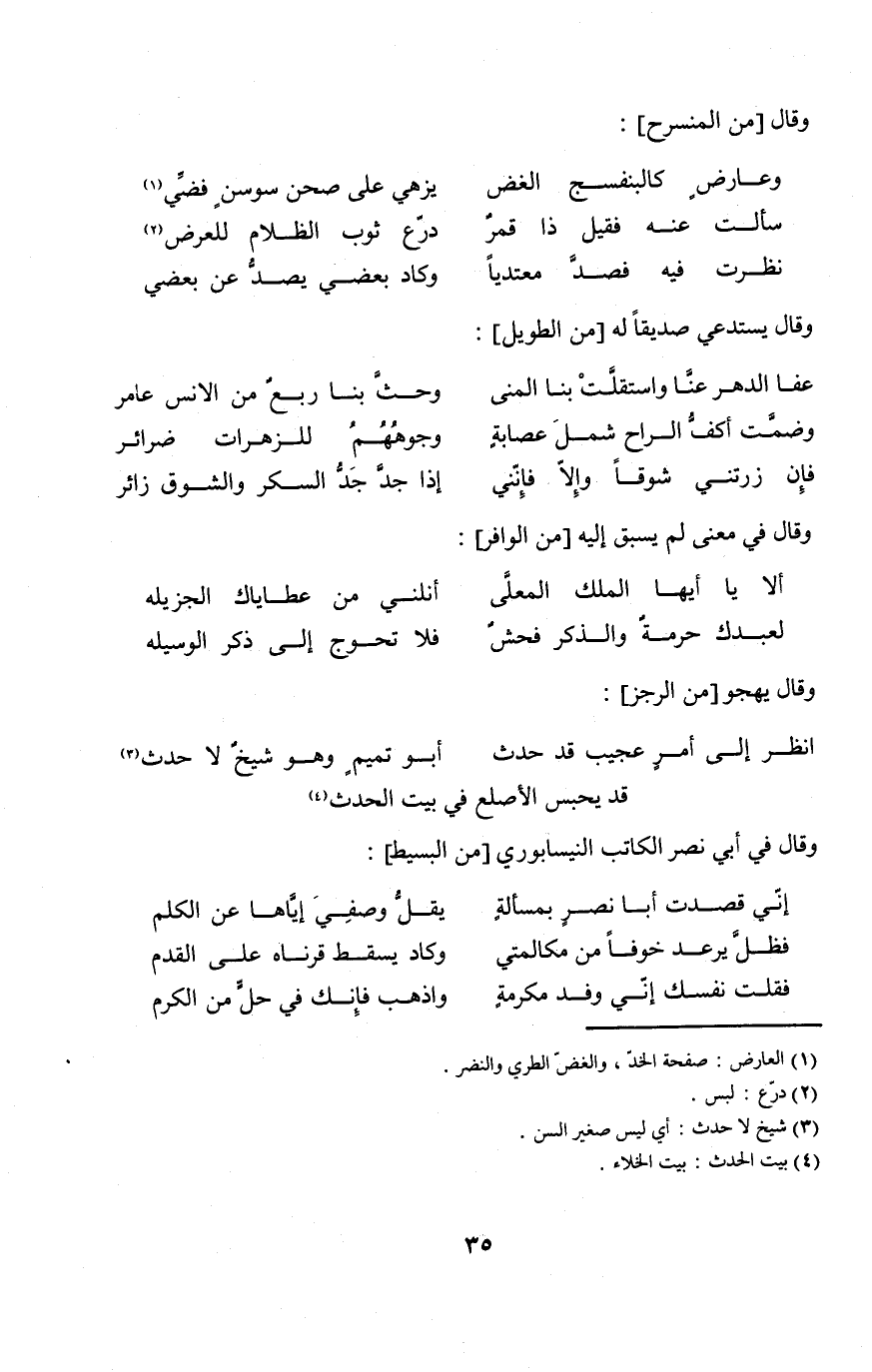 (وعارض كالبنفسج الغض ... يزهي على صحن سوسن فضي)