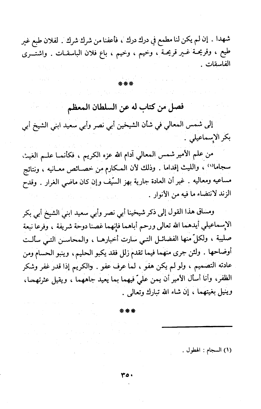 إِلَى شمس الْمَعَالِي فِي شَأْن الشَّيْخَيْنِ أبي نصر وَأبي سعيد ابْني الشَّيْخ أبي بكر الْإِسْمَاعِيلِيّ