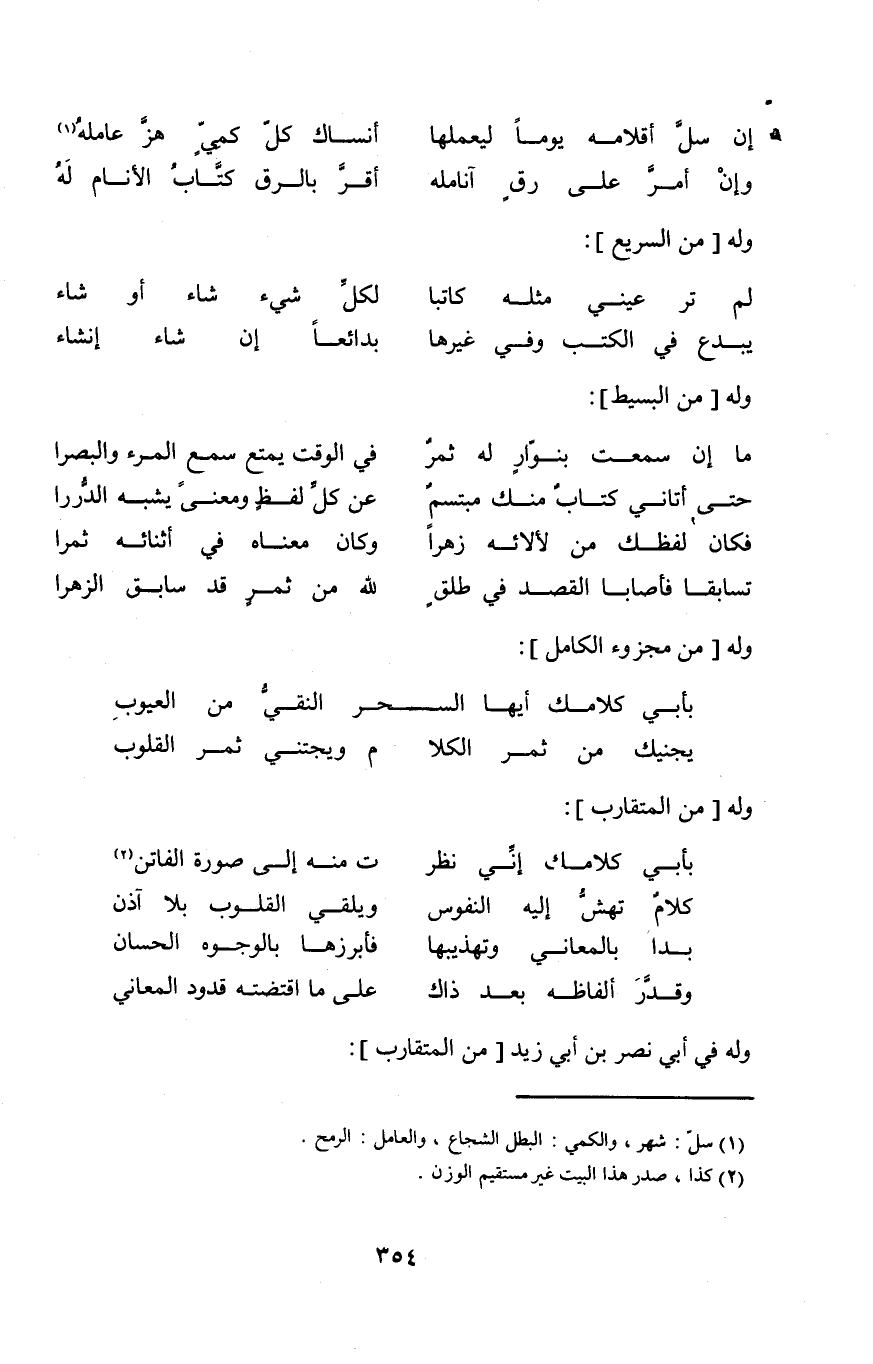 (يبدع فِي الْكتب وَفِي غَيرهَا ... بدائعا إِن شَاءَ إنْشَاء) // من السَّرِيع //