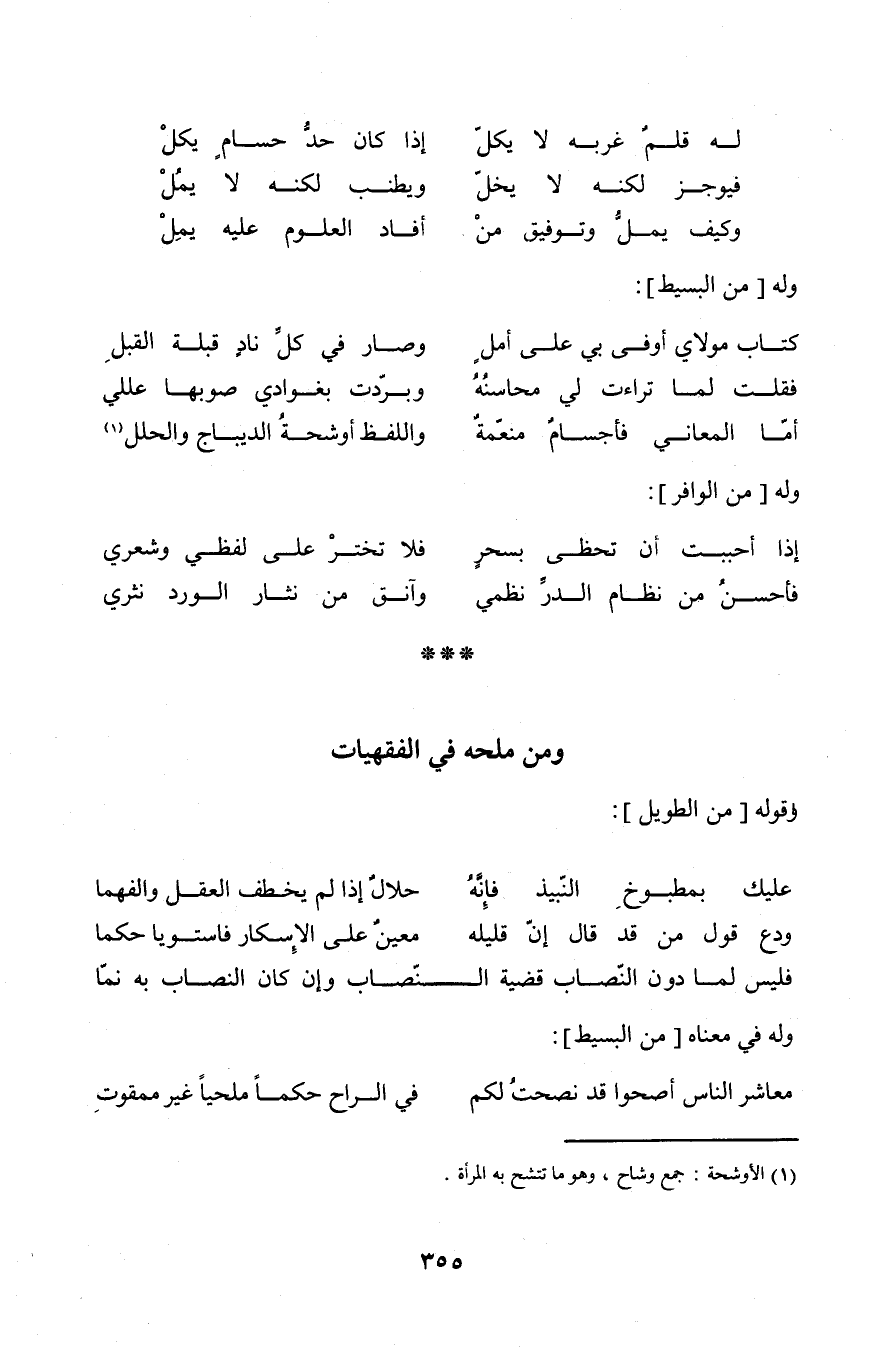 (وَكَيف يمل وتوفيق من ... أَفَادَ الْعُلُوم عَلَيْهِ يمل) // من المتقارب //