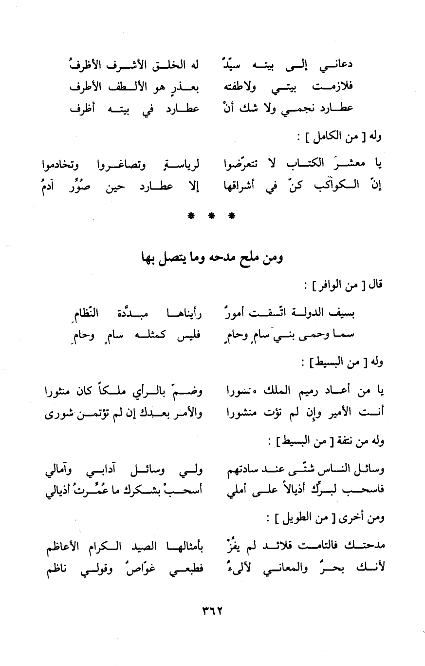 (عُطَارِد نجمي وَلَا شكّ أَن ... عُطَارِد فِي بَيته أظرف) // من المتقارب //