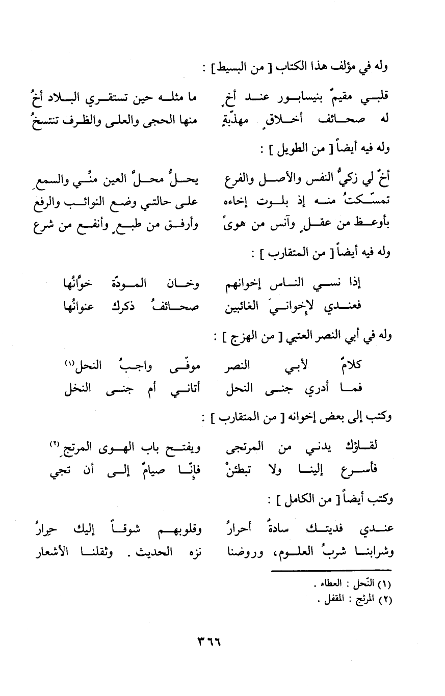 (فعندي لإخواني الغائبين ... صَحَائِف ذكرك عنوانها) // من المتقارب //