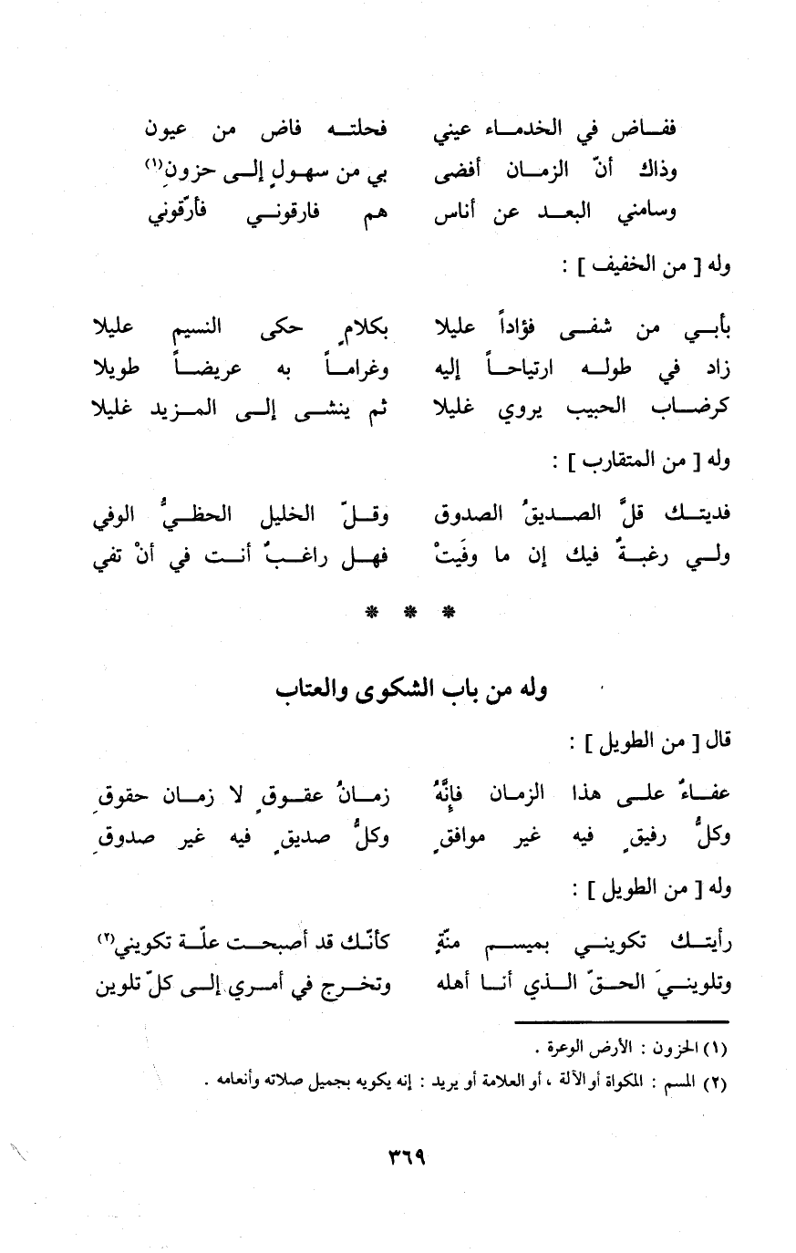 (وسامني الْبعد عَن أنَاس ... هم فارقوني فأرقوني) // من مخلع الْبَسِيط //