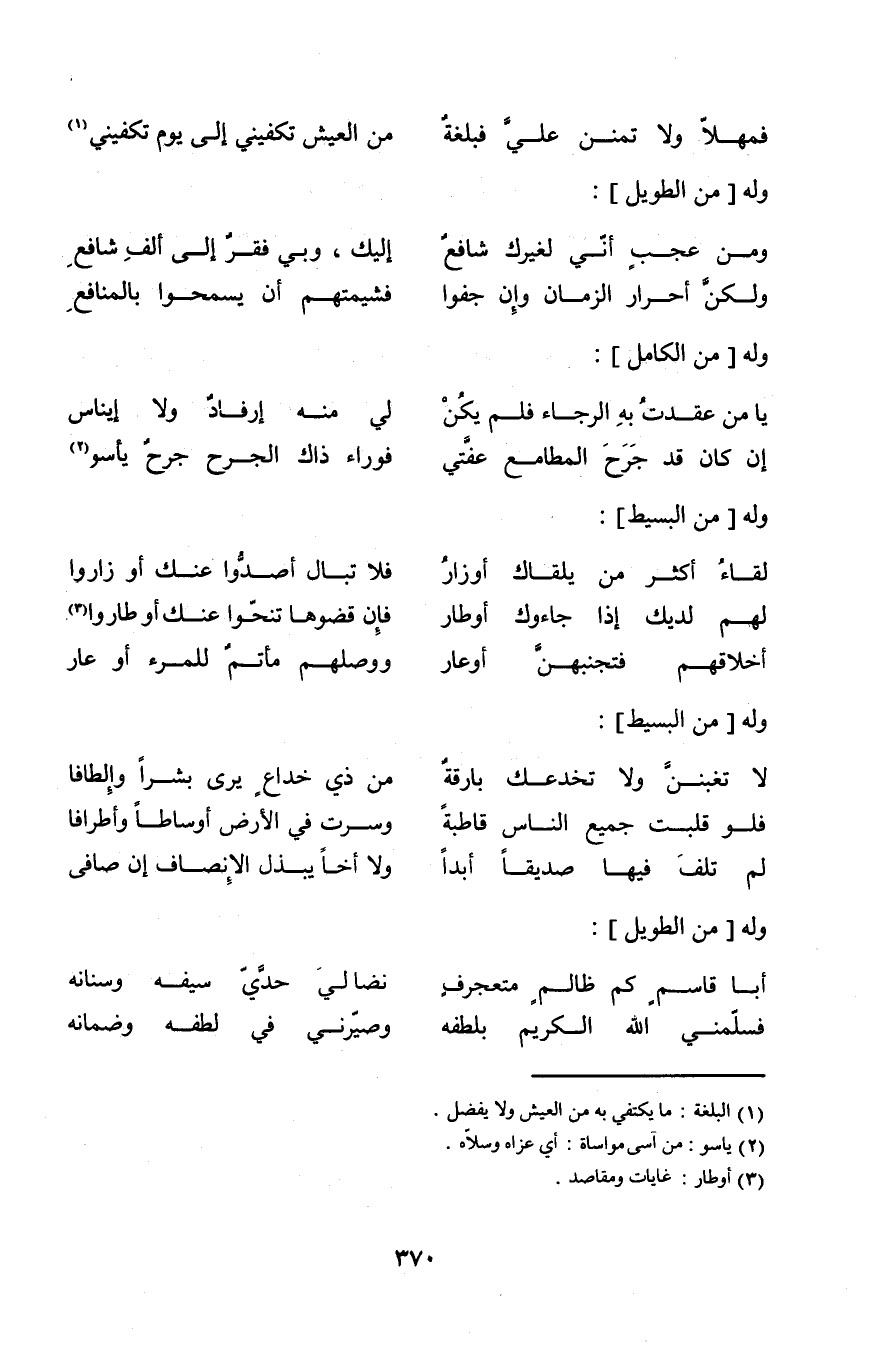 (إِن كَانَ قد جرح المطامع عفتي ... فوراء ذَاك الْجرْح جرح يأسو) // من الْكَامِل //