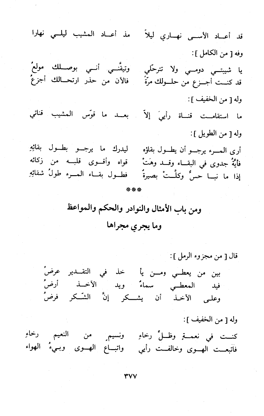 (قد أعَاد الأسى نهاري لَيْلًا ... مذ أعَاد المشيب ليلِي نَهَارا) // من الْخَفِيف //