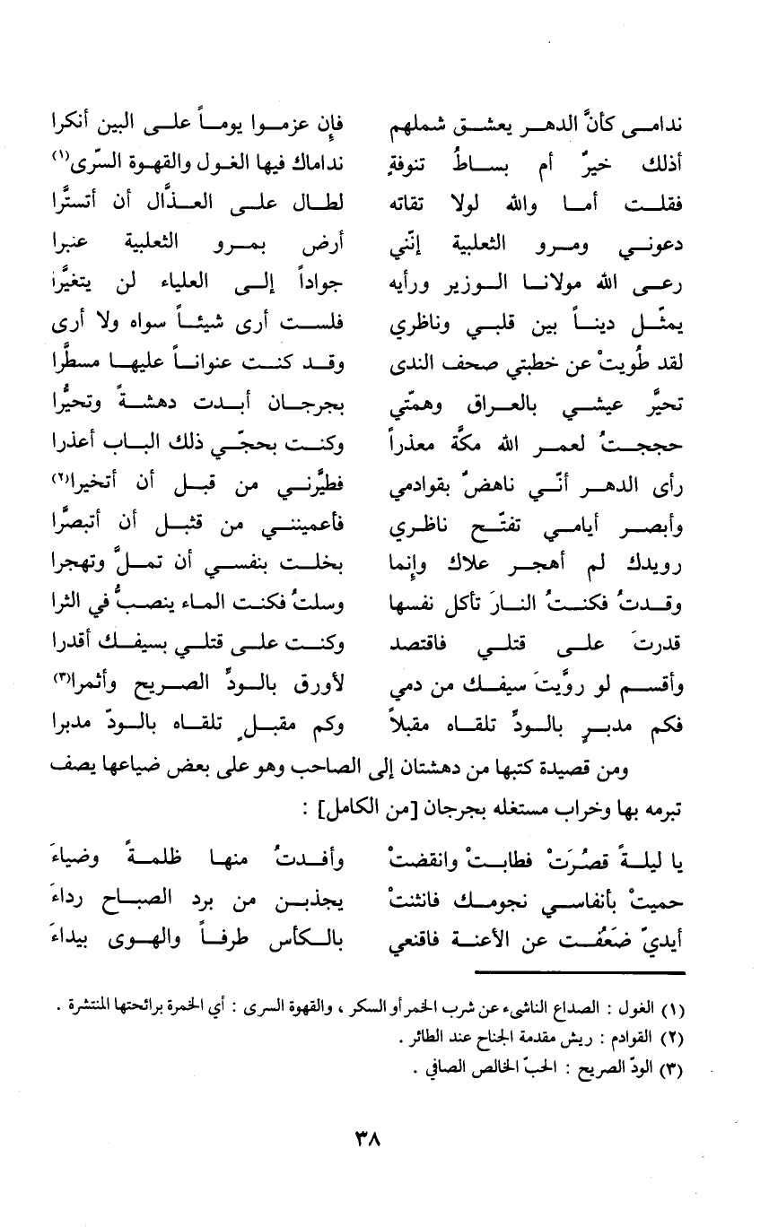 وَمن قصيدة كتبهَا من دهشتان إِلَى الصاحب وَهُوَ على بعض ضياعها يصف تبرمه بهَا وخراب مستغله بجرجان