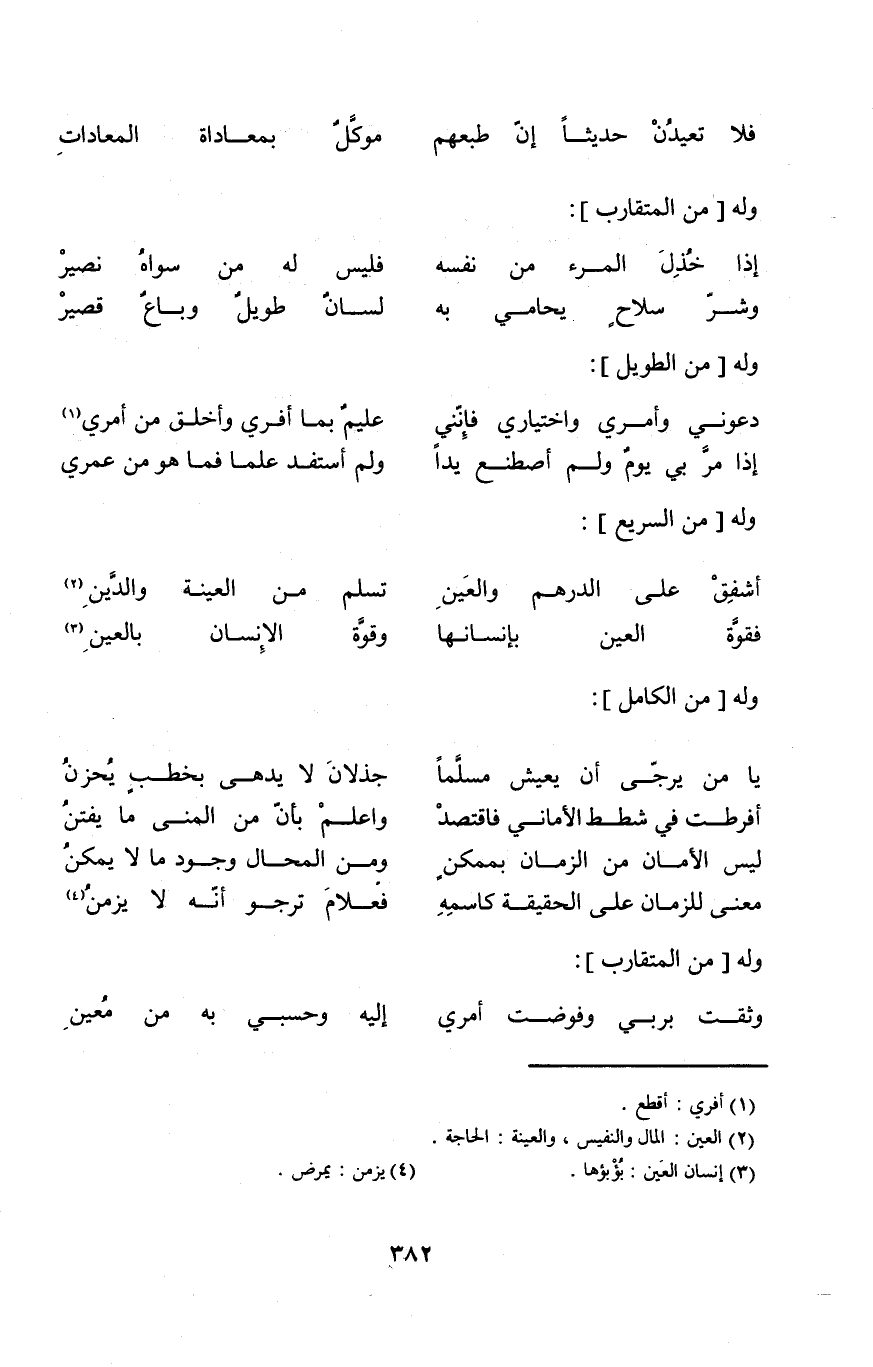 (معنى للزمان على الْحَقِيقَة كاسمه ... فعلام ترجو أَنه لَا يزمن) // من الْكَامِل //