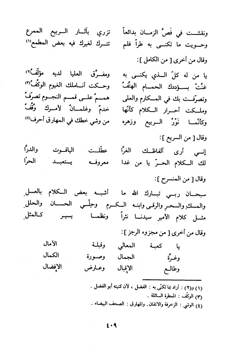 (وكأنما نور الرّبيع وزهره ... من وشي خطك فِي المهارق أحرف) // من الْكَامِل //