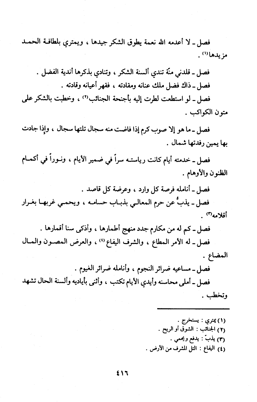 فصل قلدني منَّة تندي أَلْسِنَة الشُّكْر وتنادي بذكرها أندية الْفضل