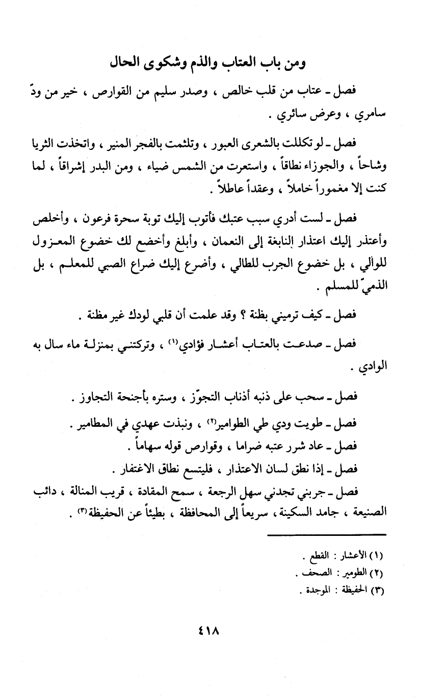 فصل عتاب من قلب خَالص وَصدر سليم من القوارص خير من ود سامري وَعرض سائري