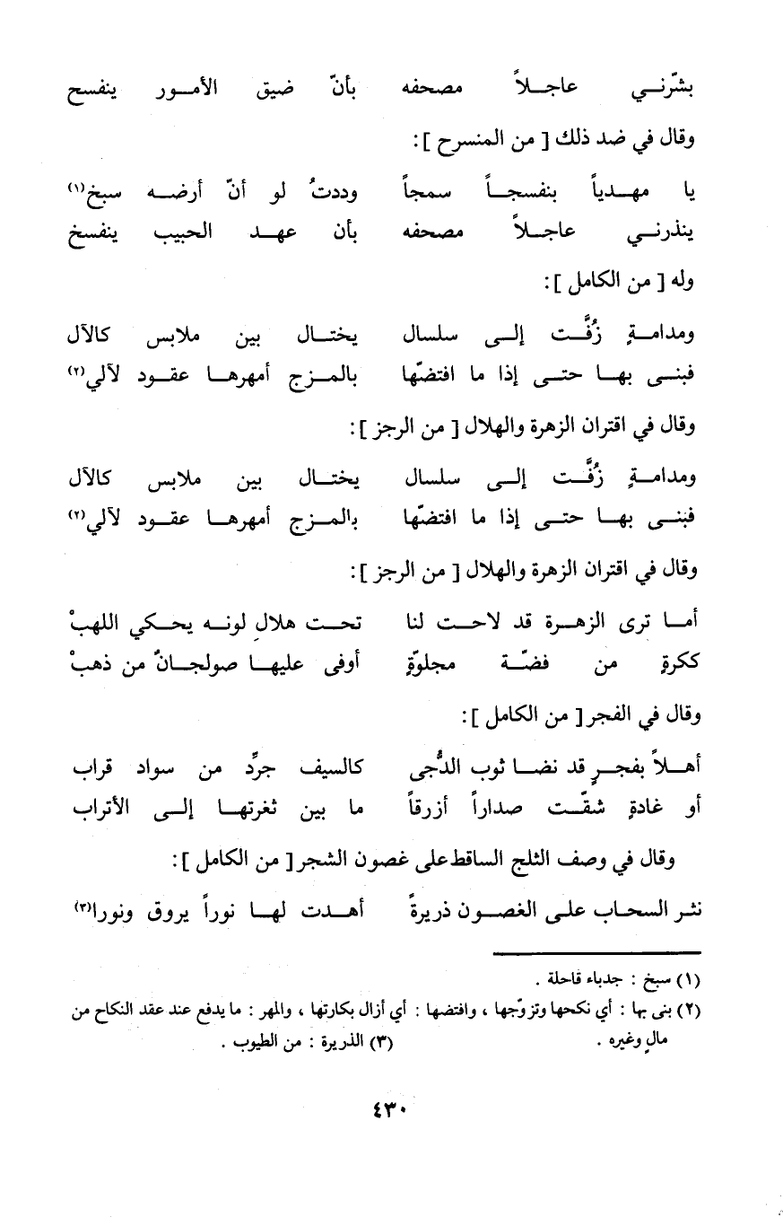 (ينذرني عَاجلا مصحفه ... بِأَن عهد الحبيب يَنْفَسِخ) // من المنسرح //