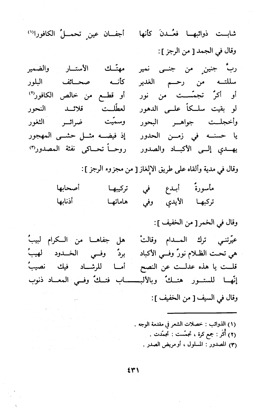 (هِيَ تَحت الظلام نور وَفِي الأكباد ... برد وَفِي الخدود لهيب)