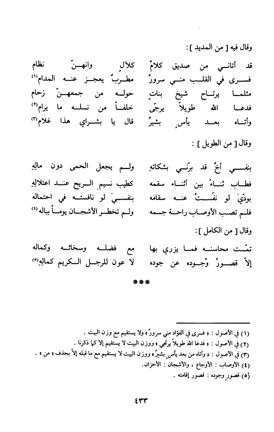 (إِلَّا قُصُور وجوده عَن جوده ... لَا عون للرجل الْكَرِيم كَمَاله) // من الْكَامِل //