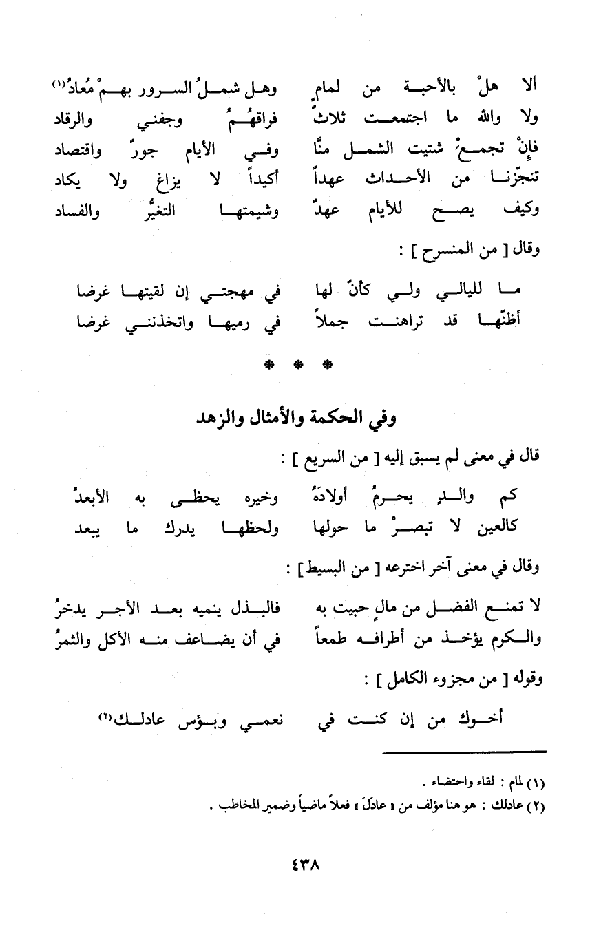 (أَلا هَل بالأحبة من لمام ... وَهل شَمل السرُور بهم معاد)
