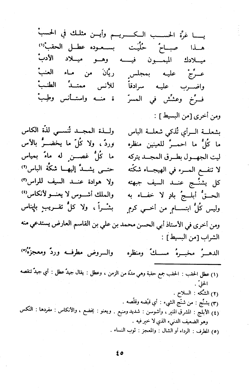 وَمن أُخْرَى فِي الْأُسْتَاذ أبي الْحسن مُحَمَّد بن عَليّ بن الْقَاسِم الْعَارِض يَسْتَدْعِي مِنْهُ الشَّرَاب
