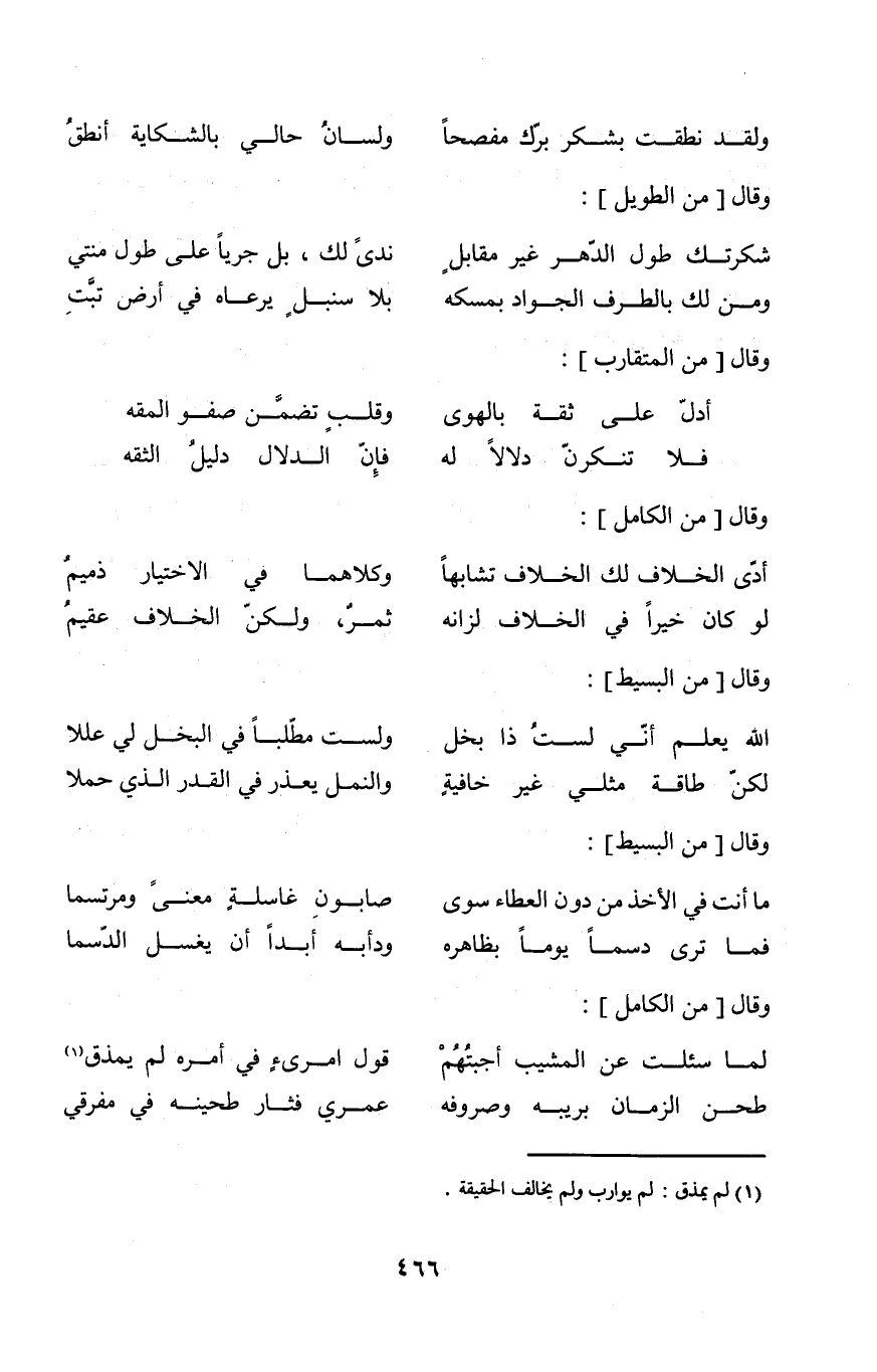 (وَلَقَد نطقت بشكر برك مفصحا ... ولسان حَالي بالشكاية أنطق) // من الْكَامِل //