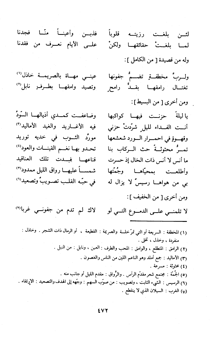 (لَا تلمني على الدُّمُوع الَّتِي لولاك ... لم تدم من جفوني غربا)