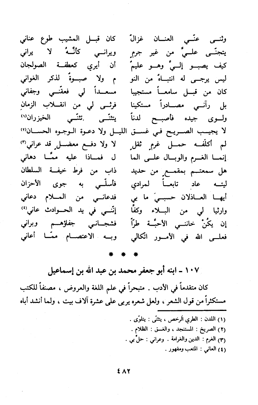 (يتجنى عَليّ من غير جرم ... ويراني كَأَنَّهُ لَا يراني)
