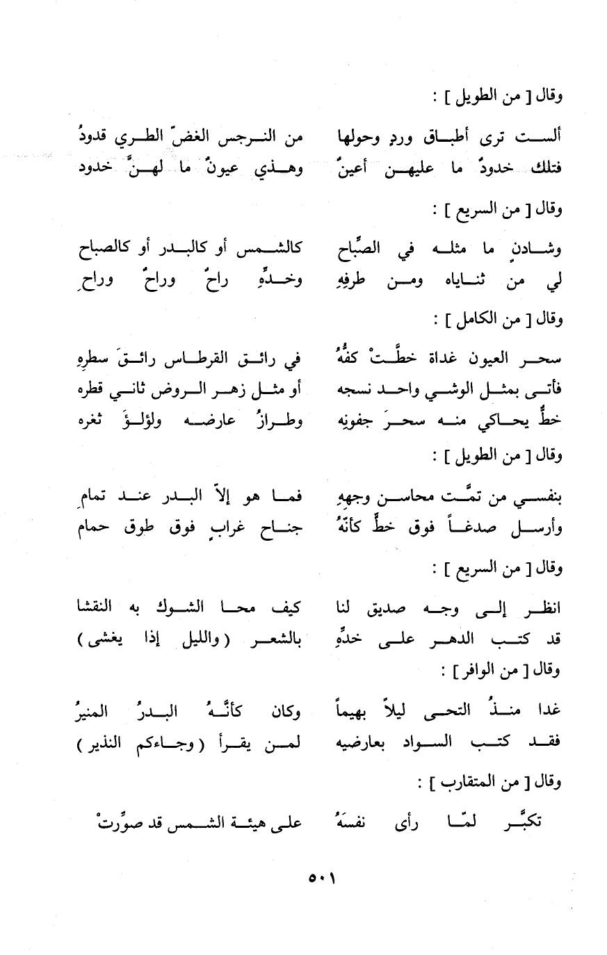 (وَأرْسل صدغا فَوق خطّ كَأَنَّهُ ... جنَاح غراب فَوق طوق حمام) // من الطَّوِيل //