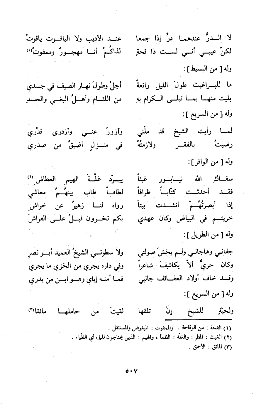 (مَا للبراغيث طول اللَّيْل راتعة ... أجل وَطول نَهَار الصَّيف فِي جَسَدِي)