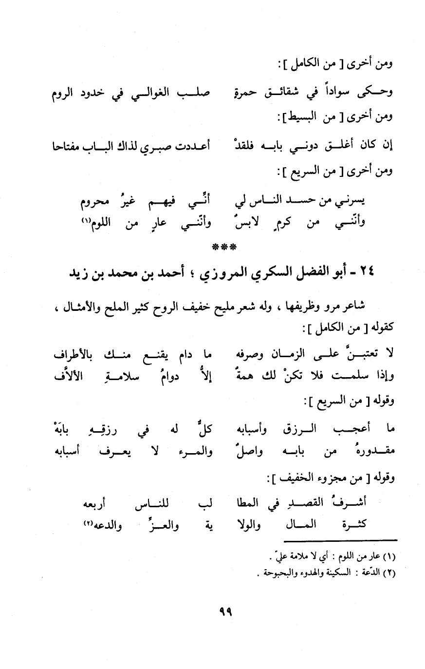 شَاعِر مرو وظريفها وَله شعر مليح خَفِيف الرّوح كثير الْملح والأمثال كَقَوْلِه