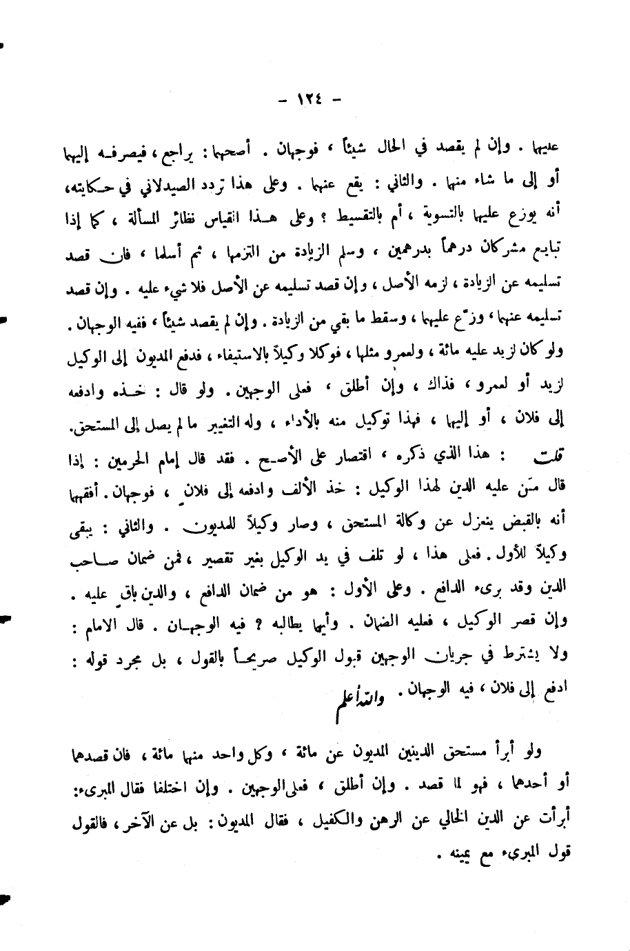 قُلْتُ: هَذَا الَّذِي ذَكَرَهُ، اقْتِصَارٌ عَلَى الْأَصَحِّ. فَقَدْ قَالَ إِمَامُ الْحَرَمَيْنِ: إِذَا قَالَ مَنْ عَلَيْهِ الدَّيْنُ لِهَذَا الْوَكِيلِ: خُذِ الْأَلْفَ وَادْفَعْهُ إِلَى فُلَانٍ، فَوَجْهَانِ. أَفْقَهُهُمَا أَنَّهُ بِالْقَبْضِ يَنْعَزِلُ عَنْ وَكَالَةِ الْمُسْتَحِقِّ، وَصَارَ وَكِيلًا لِلْمَدْيُونِ. وَالثَّانِي: يَبْقَى وَكِيلًا لِلْأَوَّلِ. فَعَلَى هَذَا، لَوْ تَلِفَ فِي يَدِ الْوَكِيلِ بِغَيْرِ تَقْصِيرٍ، فَمِنْ ضَمَانِ صَاحِبِ الدَّيْنِ وَقَدْ بَرِئَ الدَّافِعُ. وَعَلَى الْأَوَّلِ: هُوَ مِنْ ضَمَانِ الدَّافِعِ، وَالدَّيْنُ بَاقٍ عَلَيْهِ. وَإِنْ قَصَّرَ الْوَكِيلُ، فَعَلَيْهِ الضَّمَانُ. وَأَيُّهُمَا يُطَالِبُهُ؟ فِيهِ الْوَجْهَانِ. قَالَ الْإِمَامُ: وَلَا يُشْتَرَطُ فِي جَرَيَانِ الْوَجْهَيْنِ قَبُولُ الْوَكِيلِ صَرِيحًا بِالْقَوْلِ، بَلْ مُجَرَّدُ قَوْلِهِ: ادْفَعْ إِلَى فُلَانٍ، فِيهِ الْوَجْهَانِ. وَاللَّهُ أَعْلَمُ.