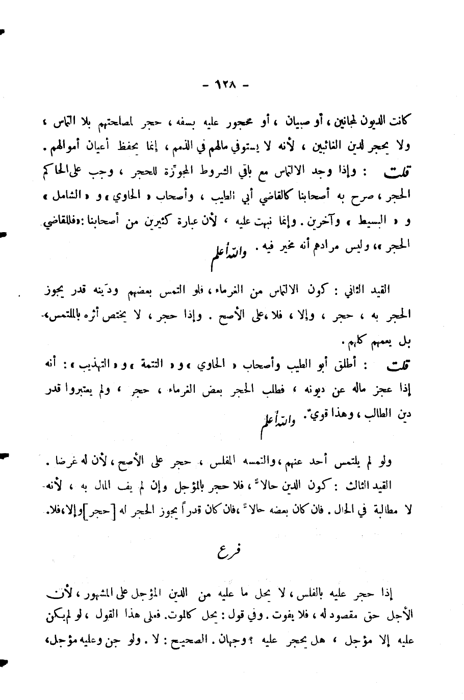 قُلْتُ: أَطْلَقَ أَبُو الطِّيبِ وَأَصْحَابُ «الْحَاوِي» وَ «التَّتِمَّةِ» وَ «التَّهْذِيبِ» : أَنَّهُ إِذَا عَجَزَ مَالُهُ عَنْ دُيُونِهِ، فَطَلَبَ الْحَجْرَ بَعْضُ الْغُرَمَاءِ، حَجَرَ، وَلَمْ يَعْتَبِرُوا قَدْرَ دَيْنِ الطَّالِبِ، وَهَذَا قُوِّيَ. وَاللَّهُ أَعْلَمُ.