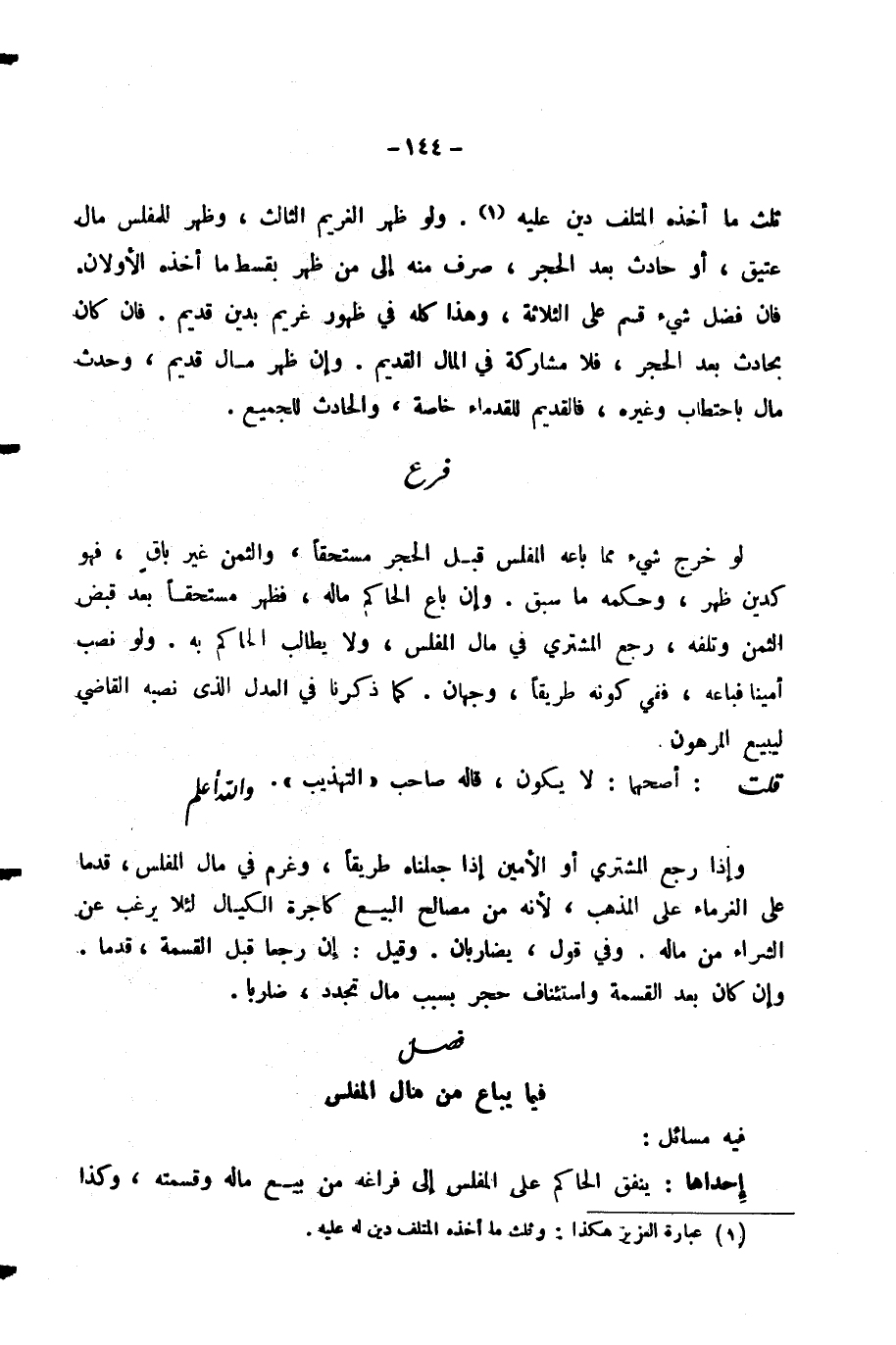 فِيمَا يُبَاعُ مِنْ مَالِ الْمُفْلِسِ