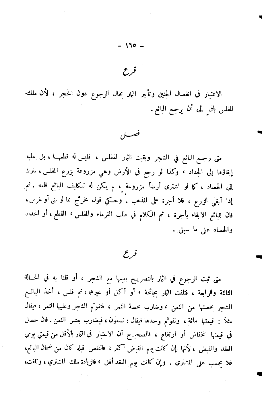 مَتَى رَجَعَ الْبَائِعُ فِي الشَّجَرِ وَبَقِيَتِ الثِّمَارُ لِلْمُفْلِسِ، فَلَيْسَ لَهُ قَطْعُهَا، بَلْ عَلَيْهِ إِبْقَاؤُهَا إِلَى الْجِدَادِ، وَكَذَا لَوْ رَجَعَ فِي الْأَرْضِ وَهِيَ مَزْرُوعَةٌ بِزَرْعِ الْمُفْلِسِ، يُتْرَكُ إِلَى الْحَصَادِ، كَمَا لَوِ اشْتَرَى أَرْضًا مَزْرُوعَةً، لَمْ يَكُنْ لَهُ تَكْلِيفُ الْبَائِعِ قَلْعَهُ. ثُمَّ إِذَا أُبْقِيَ الزَّرْعُ، فَلَا أُجْرَةَ عَلَى الْمَذْهَبِ. وَحُكِيَ قَوْلٌ مُخَرَّجٌ مِمَّا لَوْ بَنَى أَوْ غَرَسَ، فَإِنَّ لِلْبَائِعِ الْإِبْقَاءَ بِأُجْرَةٍ، ثُمَّ الْكَلَامُ فِي طَلَبِ الْغُرَمَاءِ وَالْمُفْلِسِ الْقَطْعَ أَوِ الْجِدَادَ وَالْحَصَادَ عَلَى مَا سَبَقَ.