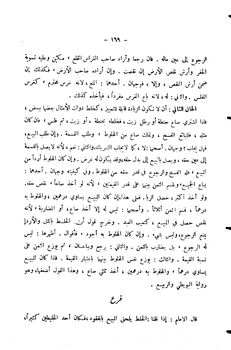 قَالَ الْإِمَامُ: إِذَا قُلْنَا: الْخَلْطُ يُلْحِقُ الْمَبِيعَ بِالْمَفْقُودِ، فَكَانَ أَحَدُ الْخَلِيطَيْنِ كَثِيرًا،