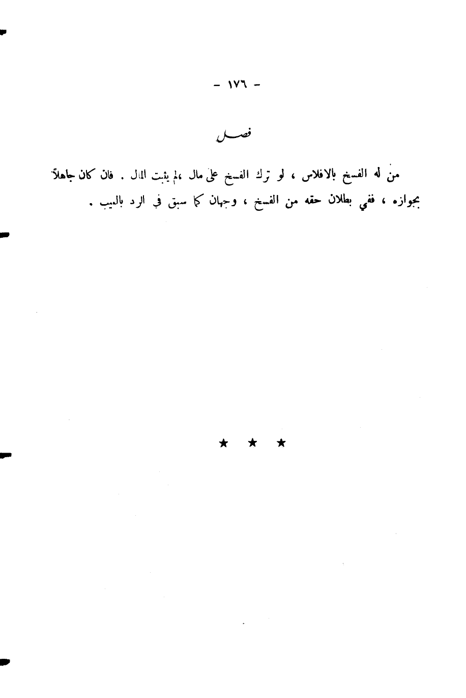 مَنْ لَهُ الْفَسْخُ بِالْإِفْلَاسِ، لَوْ تُرِكَ الْفَسْخُ عَلَى مَالٍ، لَمْ يَثْبُتِ الْمَالُ. فَإِنْ كَانَ جَاهِلًا بِجَوَازِهِ، فَفِي بُطْلَانِ حَقِّهِ مِنَ الْفَسْخِ، وَجْهَانِ كَمَا سَبَقَ فِي الرَّدِّ بِالْعَيْبِ.