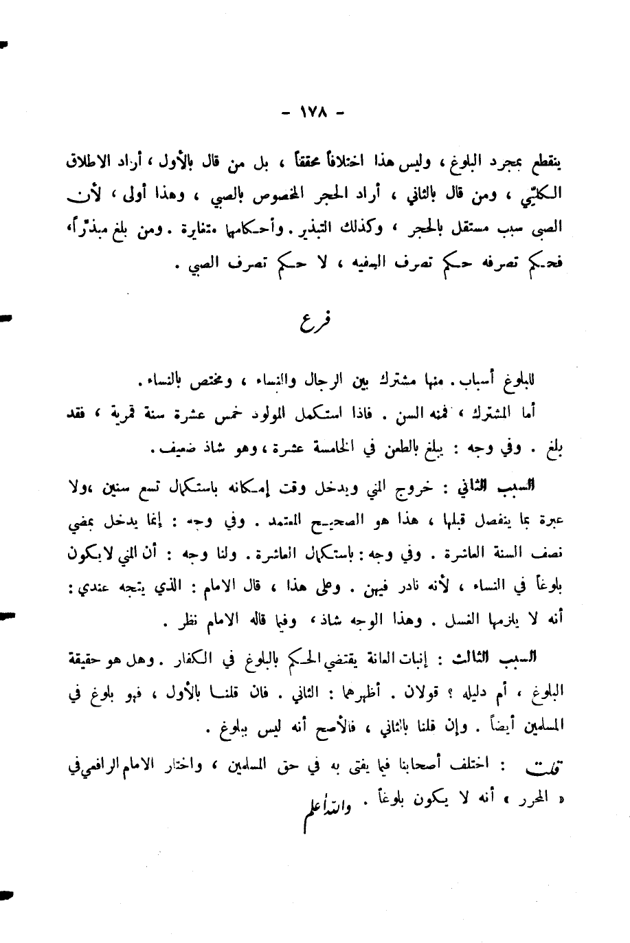 قُلْتُ: اخْتَلَفَ أَصْحَابُنَا فِيمَا يُفْتَى بِهِ فِي حَقِّ الْمُسْلِمِينَ، وَاخْتَارَ الْإِمَامُ الرَّافِعِيُّ فِي «الْمُحَرَّرِ» أَنَّهُ لَا يَكُونُ بُلُوغًا. - وَاللَّهُ أَعْلَمُ -.