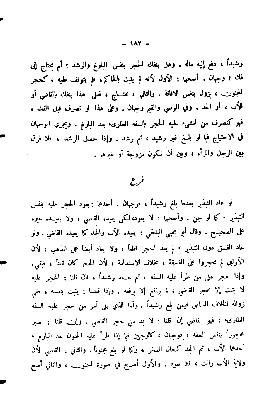 رَشِيدًا، دُفِعَ إِلَيْهِ مَالُهُ. وَهَلْ يَنْفَكُّ الْحَجْرُ بِنَفْسِ الْبُلُوغِ وَالرُّشْدِ؟ أَمْ يَحْتَاجُ إِلَى فَكٍّ؟ وَجْهَانِ. أَصَحُّهُمَا: الْأَوَّلُ لِأَنَّهُ لَمْ يَثْبُتْ بِالْحَاكِمِ، فَلَمْ يَتَوَقَّفْ عَلَيْهِ، كَحَجْرِ الْمَجْنُونِ، يَزُولُ بِنَفْسِ الْإِفَاقَةِ. وَالثَّانِي، يَحْتَاجُ، فَعَلَى هَذَا يَنْفَكُّ بِالْقَاضِي أَوِ الْأَبِ، أَوِ الْجَدِّ. وَفِي الْوَصِيِّ وَالْقَيِّمِ وَجْهَانِ. وَعَلَى هَذَا لَوْ تَصَرَّفَ قَبْلَ الْفَكِّ، فَهُوَ كَتَصَرُّفِ مَنْ أُنْشِئَ عَلَيْهِ الْحَجْرُ بِالسَّفَهِ الطَّارِئِ بَعْدَ الْبُلُوغِ. وَيَجْرِي الْوَجْهَانِ فِي الِاحْتِيَاجِ فِيمَا لَوْ بَلَغَ غَيْرَ رَشِيدٍ، ثُمَّ رَشَدَ. وَإِذَا حَصَلَ الرُّشْدُ، فَلَا فَرْقَ بَيْنَ الرَّجُلِ وَالْمَرْأَةِ وَبَيْنَ أَنْ تَكُونَ مُزَوَّجَةً أَوْ غَيْرَهَا.
