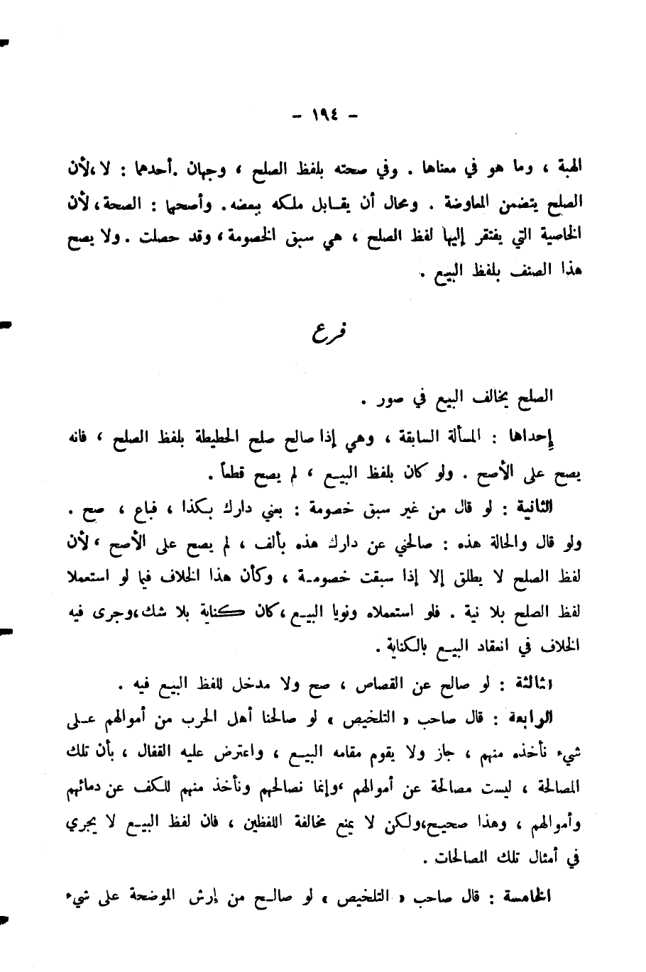 الصُّلْحُ يُخَالِفُ الْبَيْعَ فِي صُوَرٍ: