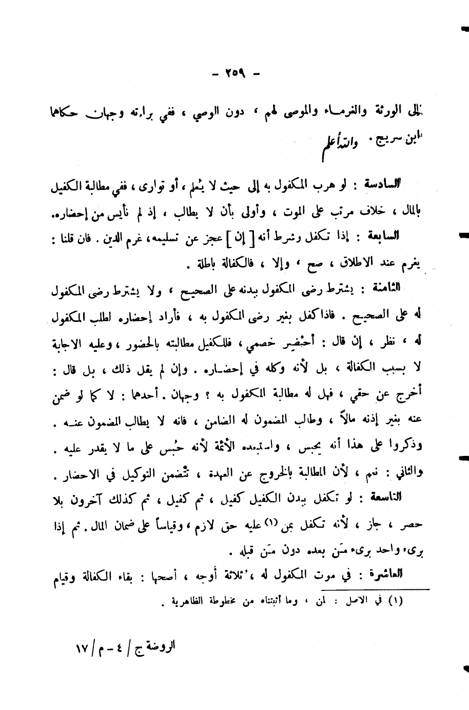 السَّابِعَةُ: إِذَا تَكَفَّلَ وَشَرَطَ أَنَّهُ