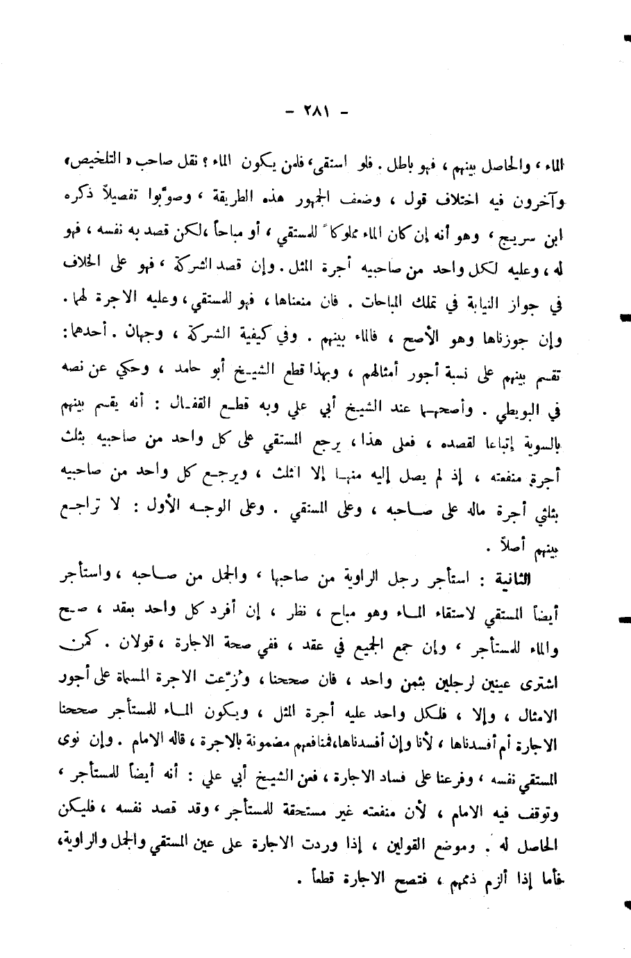 الْمَاءَ، وَالْحَاصِلُ بَيْنَهُمْ، فَهُوَ بَاطِلٌ. فَلَوِ اسْتَقَى، فَلِمَنْ يَكُونُ الْمَاءُ؟ نَقَلَ صَاحِبُ «التَّلْخِيصِ» وَآخَرُونَ فِيهِ اخْتِلَافُ قَوْلٍ، وَضَعَّفَ الْجُمْهُورُ هَذِهِ الطَّرِيقَةَ، وَصَوَّبُوا تَفْصِيلًا ذَكَرَهُ ابْنُ سُرَيْجٍ، وَهُوَ أَنَّهُ إِنْ كَانَ الْمَاءُ مَمْلُوكًا لِلْمُسْتَقِي، أَوْ مُبَاحًا، لَكِنْ قَصَدَ بِهِ نَفْسَهُ، فَهُوَ لَهُ، وَعَلَيْهِ لِكُلِّ وَاحِدٍ مِنْ صَاحِبَيْهِ أُجْرَةُ الْمِثْلِ. وَإِنْ قَصَدَ الشَّرِكَةَ، فَهُوَ عَلَى الْخِلَافِ فِي جَوَازِ النِّيَابَةِ فِي تَمَلُّكِ الْمُبَاحَاتِ. فَإِنْ مَنَعْنَاهَا، فَهُوَ لِلْمُسْتَقِي، وَعَلَيْهِ الْأُجْرَةُ لَهُمَا. وَإِنْ جَوَّزْنَاهَا وَهُوَ الْأَصَحُّ، فَالْمَاءُ بَيْنَهُمْ. وَفِي كَيْفِيَّةِ الشَّرِكَةِ، وَجْهَانِ. أَحَدُهُمَا: تُقَسَّمُ بَيْنَهُمْ عَلَى نِسْبَةِ أُجُورِ أَمْثَالِهِمْ، وَبِهَذَا قَطَعَ الشَّيْخُ أَبُو حَامِدٍ، وَحَكَى عَنْ نَصِّهِ فِي الْبُوَيْطِيِّ. وَأَصَحُّهُمَا عِنْدَ الشَّيْخِ أَبِي عَلِيٍّ وَبِهِ قَطَعَ الْقَفَّالُ: أَنَّهُ يُقَسَّمُ بَيْنَهُمْ بِالسَّوِيَّةِ إِتْبَاعًا لِقَصْدِهِ، فَعَلَى هَذَا، يَرْجِعُ الْمُسْتَقِي عَلَى كُلِّ وَاحِدٍ مِنْ صَاحِبَيْهِ بِثُلُثِ أُجْرَةِ مَنْفَعَتِهِ، إِذْ لَمْ يَصِلْ إِلَيْهِ مِنْهَا إِلَّا الثُّلُثَ، وَيَرْجِعُ كُلُّ وَاحِدٍ مِنْ صَاحِبَيْهِ بِثُلُثَيْ أُجْرَةِ مَالِهِ عَلَى صَاحِبِهِ، وَعَلَى الْمُسْتَقِي. وَعَلَى الْوَجْهِ الْأَوَّلِ: لَا تَرَاجُعَ بَيْنَهُمْ أَصْلًا.