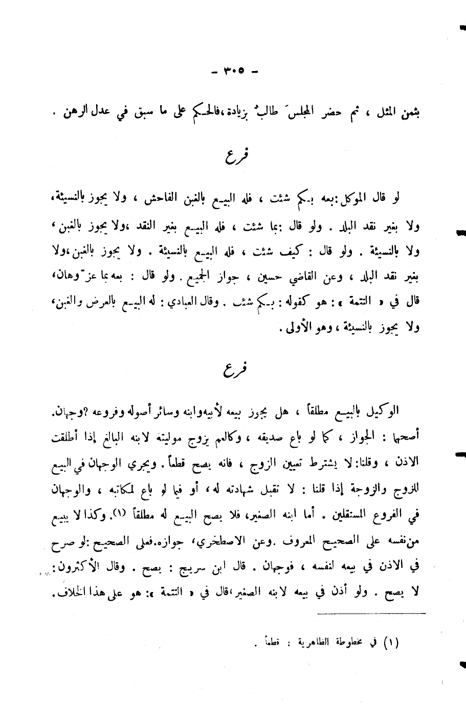 الْوَكِيلُ بِالْبَيْعِ مُطْلَقًا، هَلْ يَجُوزُ بَيْعُهُ لِأَبِيهِ وَابْنِهِ وَسَائِرِ أُصُولِهِ وَفُرُوعِهِ؟ وَجْهَانِ. أَصَحُّهُمَا: الْجَوَازُ، كَمَا لَوْ بَاعَ صَدِيقَهُ، وَكَالْعَمِّ يُزَوِّجُ مُوَلِّيَتَهُ لِابْنِهِ الْبَالِغِ إِذَا أَطْلَقَتِ الْإِذْنَ، وَقُلْنَا: لَا يُشْتَرَطُ تَعْيِينُ الزَّوْجِ، فَإِنَّهُ يَصِحُّ قَطْعًا. وَيَجْرِي الْوَجْهَانِ فِي الْبَيْعِ لِلزَّوْجِ وَالزَّوْجَةِ إِذَا قُلْنَا: لَا تُقْبَلُ شَهَادَتُهُ لَهُ، أَوْ فِيمَا لَوْ بَاعَ لِمُكَاتِبِهِ، وَالْوَجْهَانِ فِي الْفُرُوعِ الْمُسْتَقِلَّيْنِ. أَمَّا ابْنُهُ الصَّغِيرُ، فَلَا يَصِحُّ الْبَيْعُ لَهُ مُطْلَقًا. وَكَذَا لَا يَبِيعُ مِنْ نَفْسِهِ عَلَى الصَّحِيحِ الْمَعْرُوفِ. وَعَنِ الْإِصْطَخْرِيِّ، جَوَازُهُ. فَعَلَى الصَّحِيحِ: لَوْ صَرَّحَ فِي الْإِذْنِ فِي بَيْعِهِ لِنَفْسِهِ، فَوَجْهَانِ. قَالَ ابْنُ سُرَيْجٍ: يَصِحُّ. وَقَالَ الْأَكْثَرُونَ: لَا يَصِحُّ. وَلَوْ أَذِنَ فِي بَيْعِهِ لِابْنِهِ الصَّغِيرِ، قَالَ فِي «التَّتِمَّةِ» : هُوَ عَلَى هَذَا الْخِلَافِ.