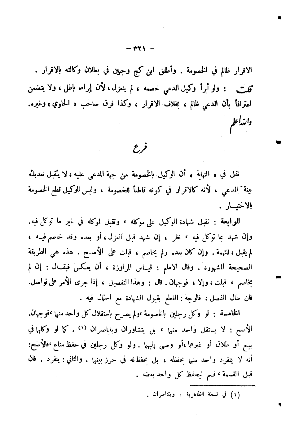 الْإِقْرَارِ ظَالِمٌ فِي الْخُصُومَةِ. وَأَطْلَقَ ابْنُ كَجٍّ وَجْهَيْنِ فِي بُطْلَانِ وَكَالَتِهِ بِالْإِقْرَارِ.