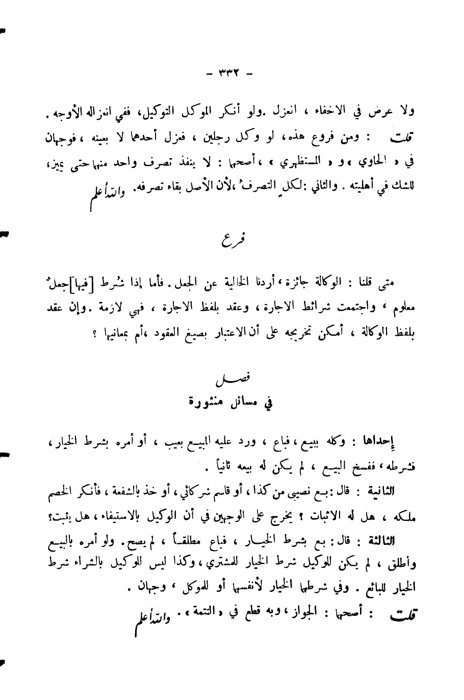فِي مَسَائِلَ مَنْثُورَةٍ