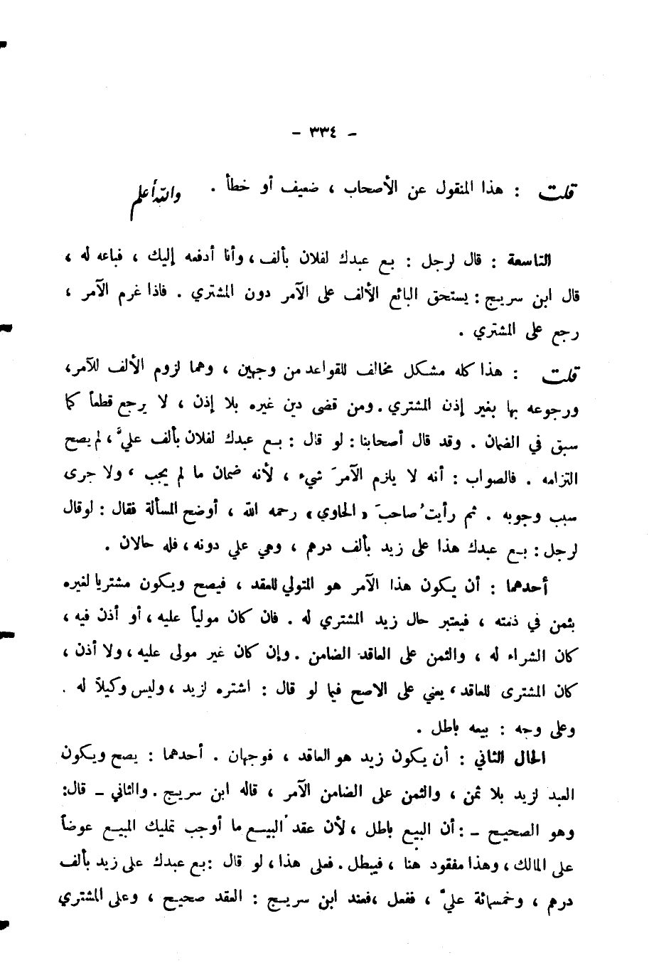 التَّاسِعَةُ: قَالَ لِرَجُلٍ: بِعْ عَبْدَكَ لِفُلَانٍ بِأَلْفٍ، وَأَنَا أَدْفَعُهُ إِلَيْكَ، فَبَاعَهُ لَهُ، قَالَ ابْنُ سُرَيْجٍ: يَسْتَحِقُّ الْبَائِعُ الْأَلْفَ عَلَى الْآمِرِ دُونَ الْمُشْتَرِي. فَإِذَا غَرِمَ الْآمِرُ، رَجَعَ عَلَى الْمُشْتَرِي.